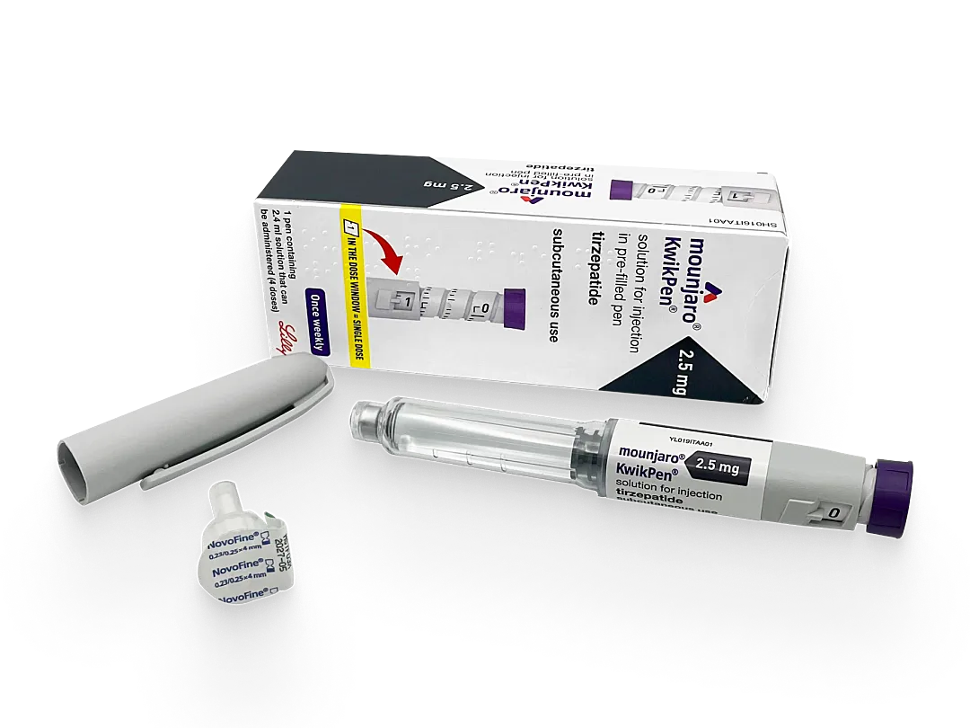 Mounjaro is a once-weekly injectable GLP-1 medication designed to regulate appetite, enhance feelings of fullness, and promote significant weight reduction. By mimicking naturally occurring hormones that regulate metabolism and energy balance, Mounjaro helps patients:
